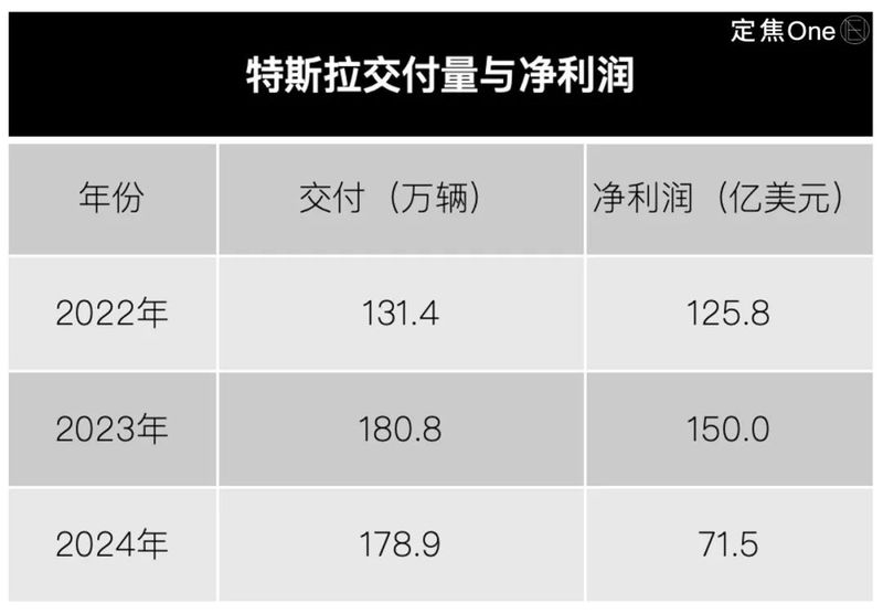作为全球纯电车龙头,特斯拉2024年比2022年多卖了48万辆车,净利润不到当时的六成。
