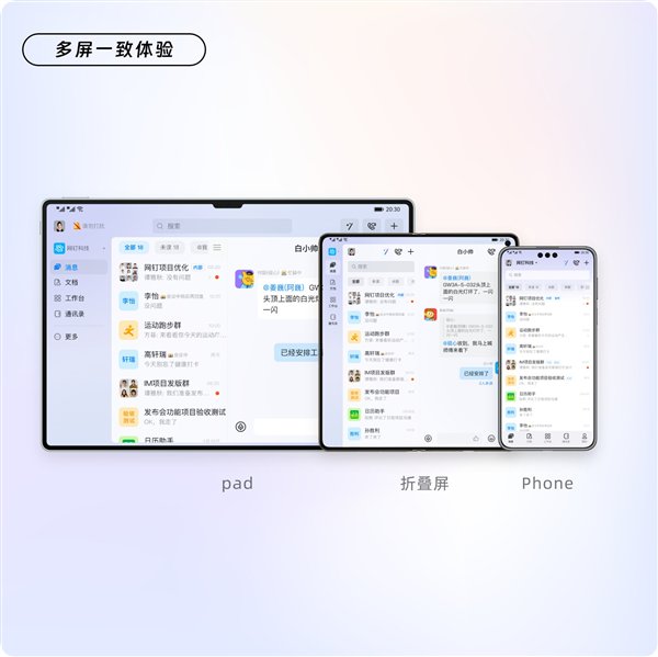 基于鸿蒙系统多端流转的特性,钉钉鸿蒙版还可以实现多设备的高效协同,让音视频会议实现无缝接续和跨端流转,多屏体验一致。