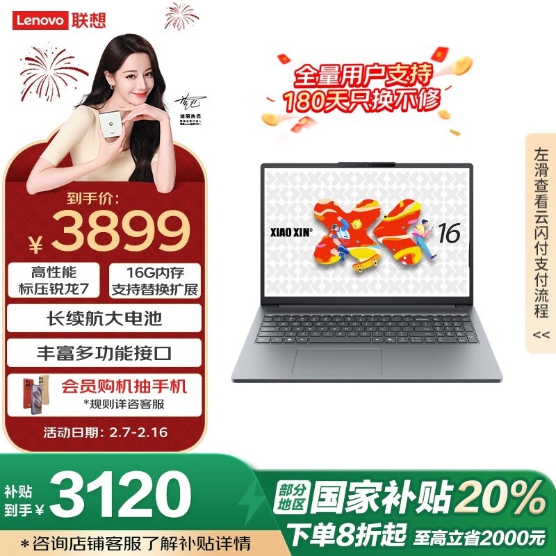 联想小新16SE 2025轻薄笔记本电脑到手价3868元