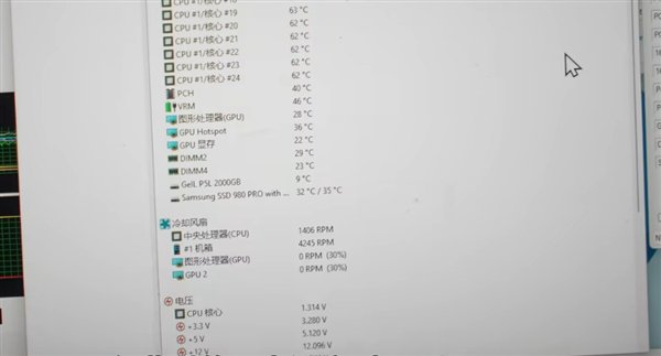 RTX 4090+13900K上代旗舰配置,室内26℃测试结果显示,通过使用FurMark和AIDA“双烤”40 分钟,系统CPU内核仅比测试开始时高出几度。