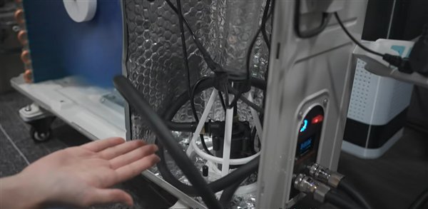 也就是会所,只要有一根长一些的管子,把散热器(空调外机)挂在室外,不用搞焊接,不用压缩机,你就可以享受到近乎无敌的散热效果,RTX 5090也完全不在话下。