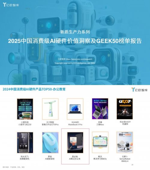近日,亿欧智库发布了《2025中国消费级AI硬件价值洞察及GEEK50榜单报告》(以下简称《报告》),思必驰AI办公本凭借卓越的产品力,成功入选“2024中国消费级AI硬件产品TOP50”。