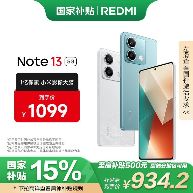 红米 Note 13 5G手机仅售895元!限时抢购