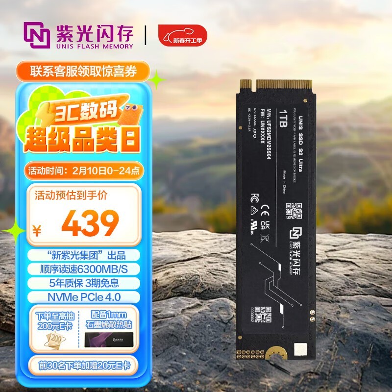 紫光UNIS FLASH MEMORY S2 Ultra 1TB 固态硬盘 417元