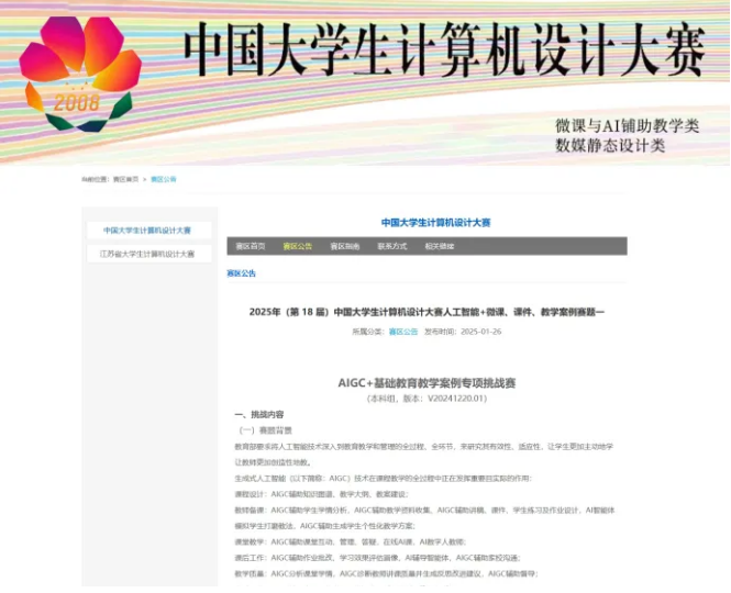 近日,中国大学生计算机设计大赛组委会下发了关于举办“2025 年(第18 届)中国大学生计算机设计大赛”的 通知。