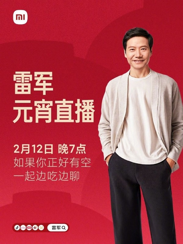 【CNMO科技消息】作为当前个人IP运营得最好的企业家,小米创办人、董事长兼CEO雷军早已成为互联网顶流之一。2月10日下午,雷军在个人微博发文称,继此前跨年直播后,又将在元宵节再度开启直播。