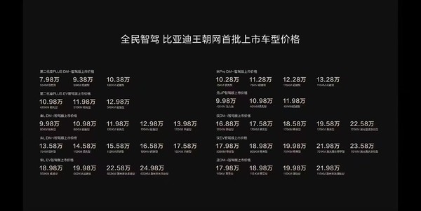 具体来看,20万元以上的车型如夏、汉EV/DM-i、唐DM-i等将全系标配天神之眼高阶智驾。15万至20万元级别的车型如宋L EV、海狮07 EV、海豹EV等也将全系标配。10万至15万元级别的车型如宋LDM-i、宋PLUS EV/DM-i、海豹06 GT、海豹07 DM-i等同样如此。而在10万元以下的车型中,多数也会搭载天神之眼,例如第二代秦PLUS DM-i、海豹05DM-i和海鸥等。