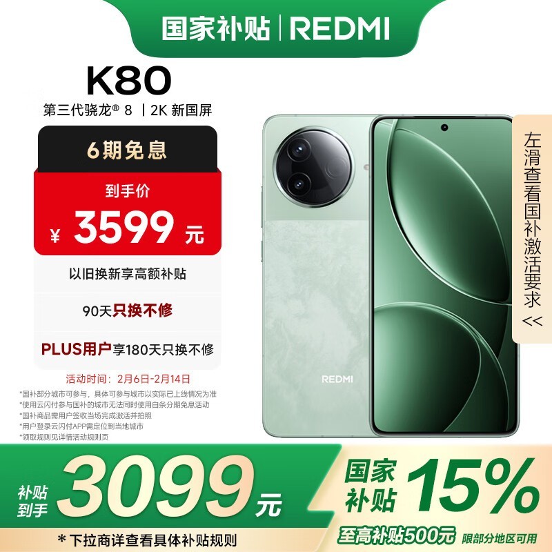 红米K80 5G手机限时抢购价3049元 16GB+1TB存储组合