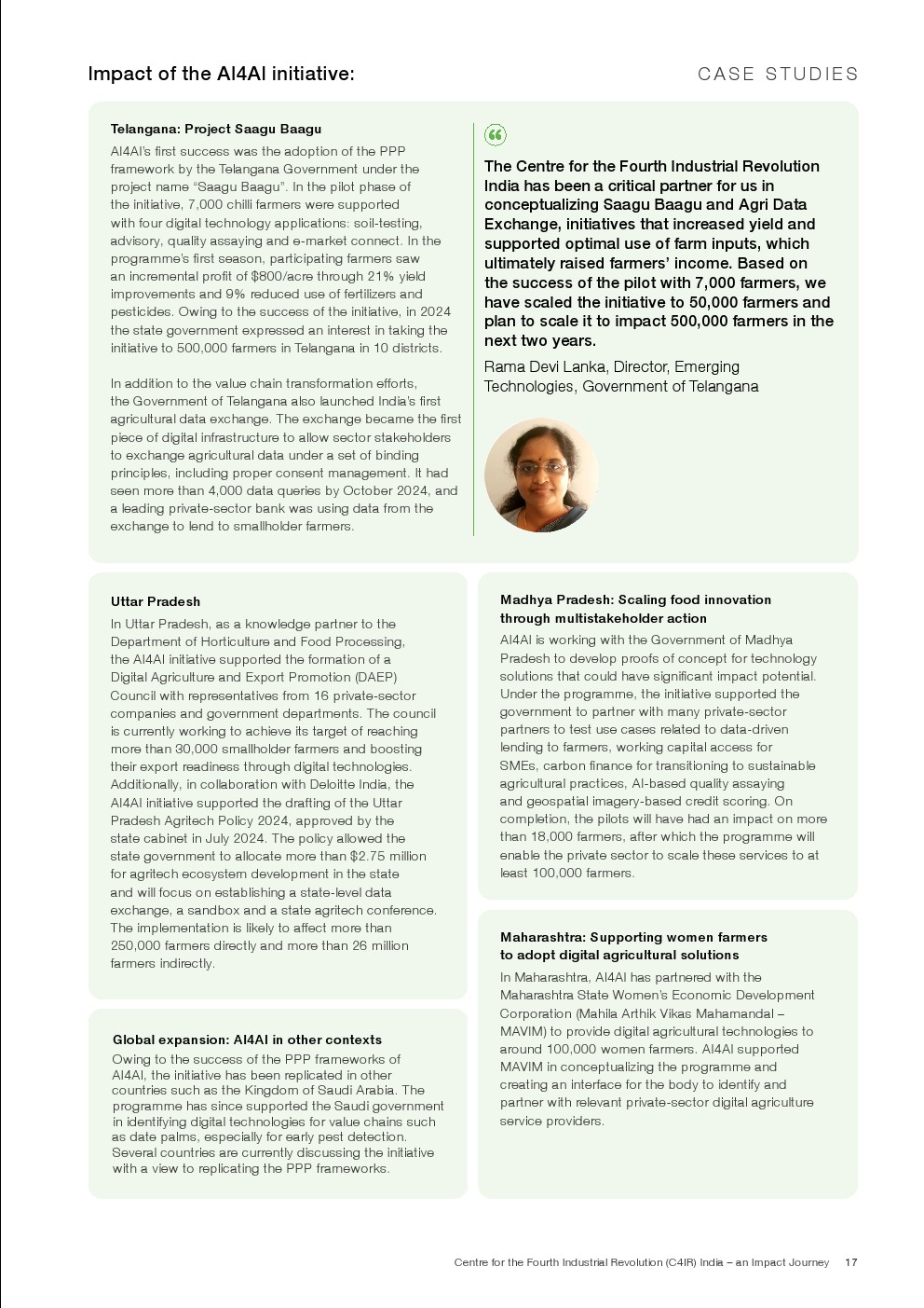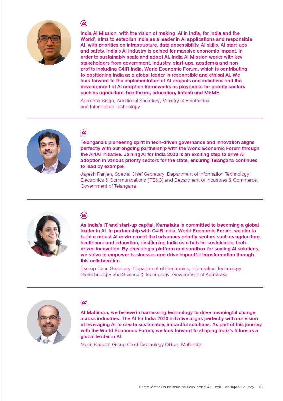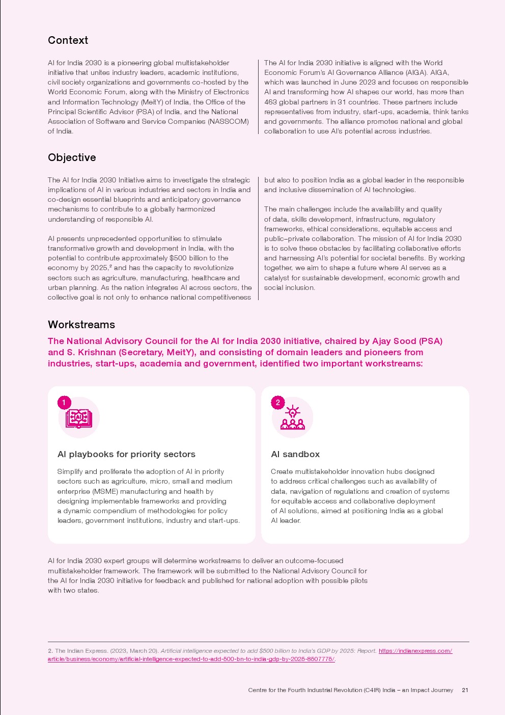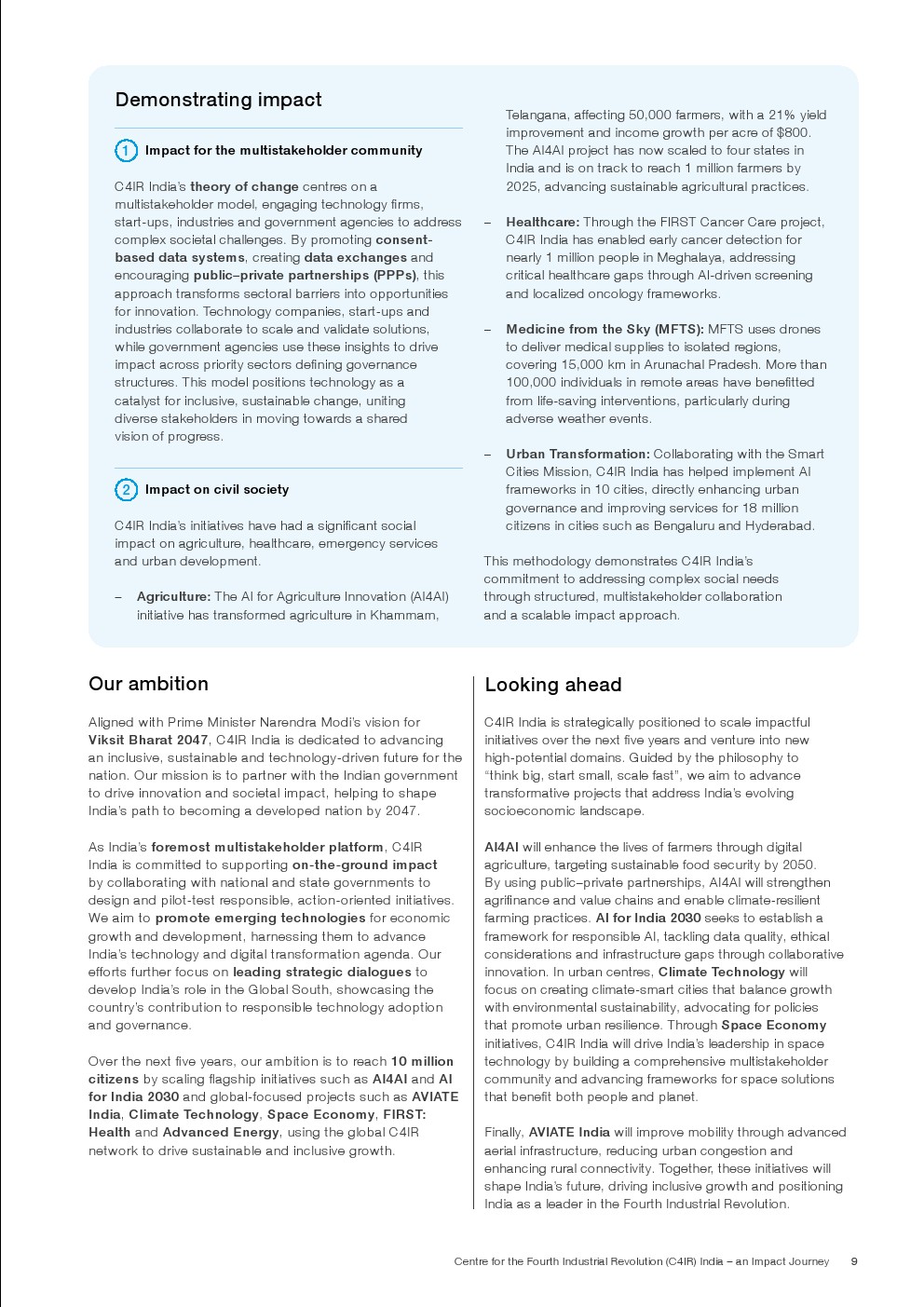 世界经济论坛发布了新报告“印度第四次工业革命”。印度第四次工业革命中心(C4IR)在过去六年中率先开展了一些关键项目,旨在利用技术潜力改善农业、医疗保健、教育和城市转型等各个领域。