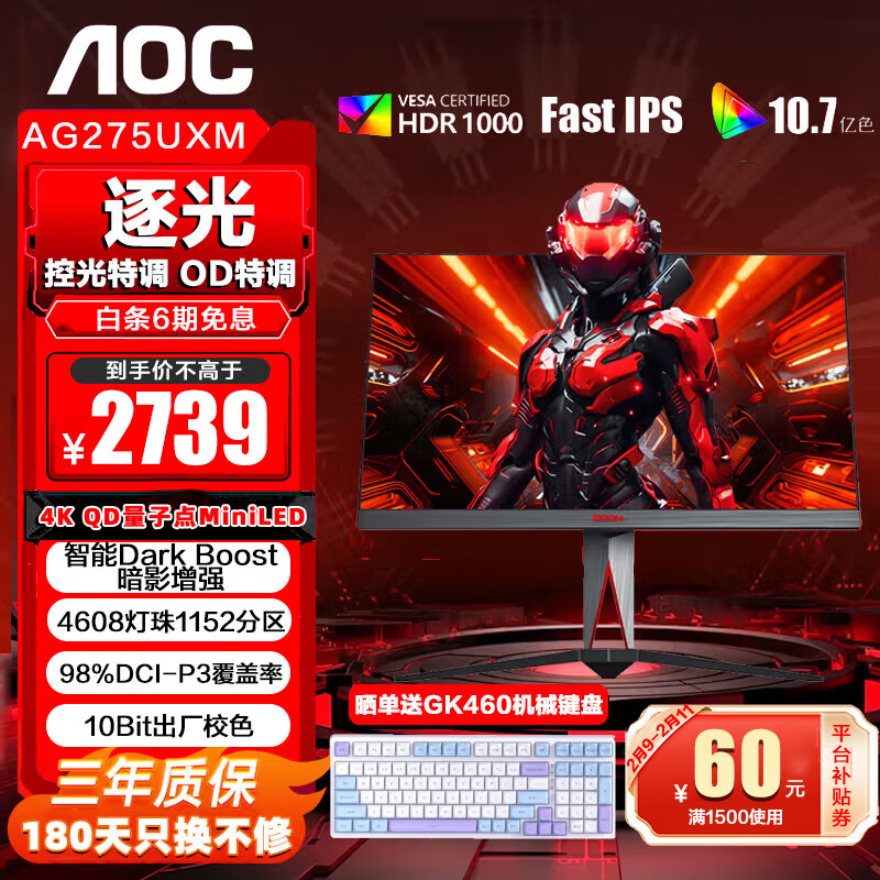 爱攻 AG275UXM显示器仅售2739元