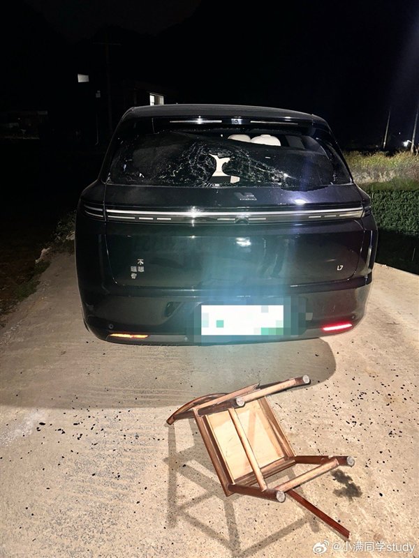 而后不知为何,突然就从黑暗里蹿出一名醉酒男子,男子手里还搞搞举着一把椅子,直接冲着L7的尾窗就扔了出去。