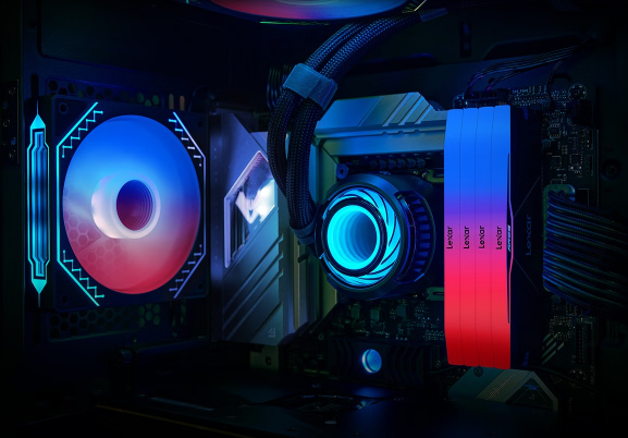 同时,内存顶部有RGB灯带,内部集成了8颗高亮LED灯珠,支持13种RGB灯光模式和1680万种色彩选择,能够与主流主板进行灯效同步。