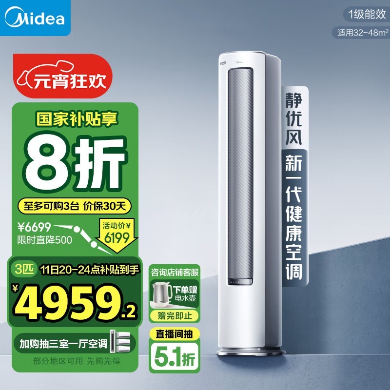 美的静优风KFR-72L/N8HY1-1 立柜式空调到手价4711元!