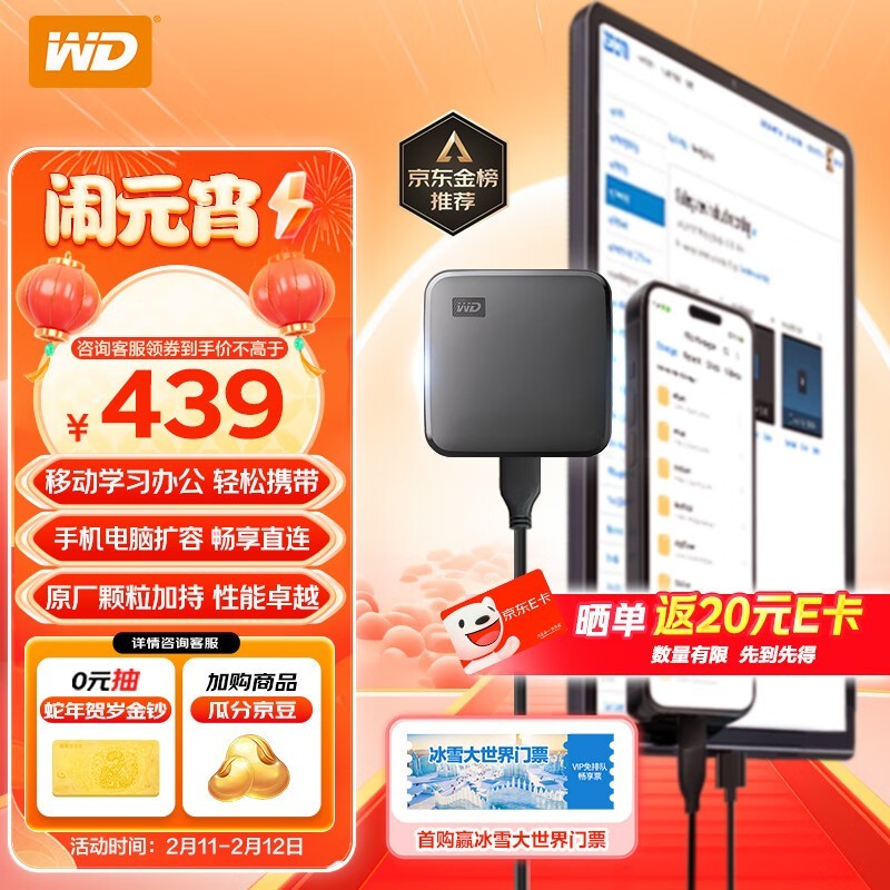 西部数据 Elements SE 移动固态硬盘1TB 版本仅需429元