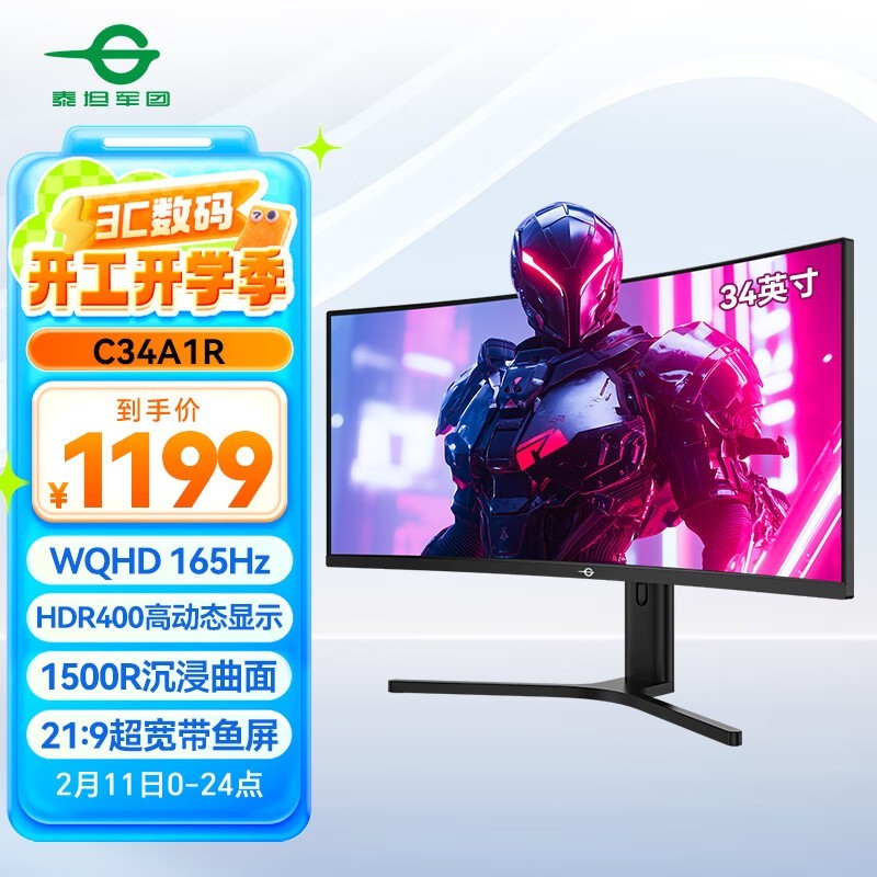 泰坦军团C34A1R显示器到手价1199元 电竞屏天花板!