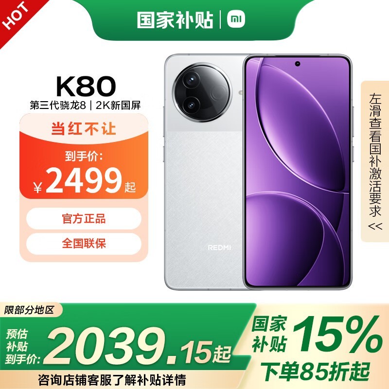 原价2499元,小米红米K80手机直降至2039元!