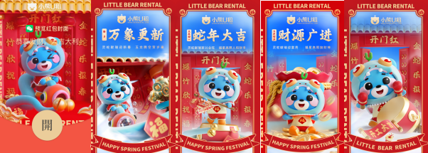 此外,依托蛇年定制IP形象,小熊U租还延展推出微信红包封面、蛇年限定表情包和系列创意海报,氛围感满满,特别是微信红包封面和表情包,一经推出便成为不少公司的“拜年神器”。同时,春节期间,小熊U租还为企业推出了线上值班服务,保障企业客户服务问题得到及时响应和处理。