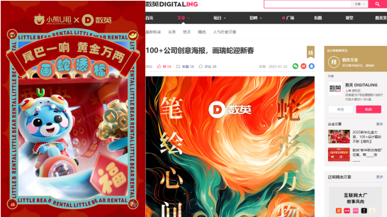 值得一提的是,今年春节,小熊U租还携手数英网,以蛇年IP熊为核心,与100+品牌和代理商一起,携手共创蛇年创意海报,画出对蛇年的美好祝福,掀起全行业最热闹的拜年狂欢。