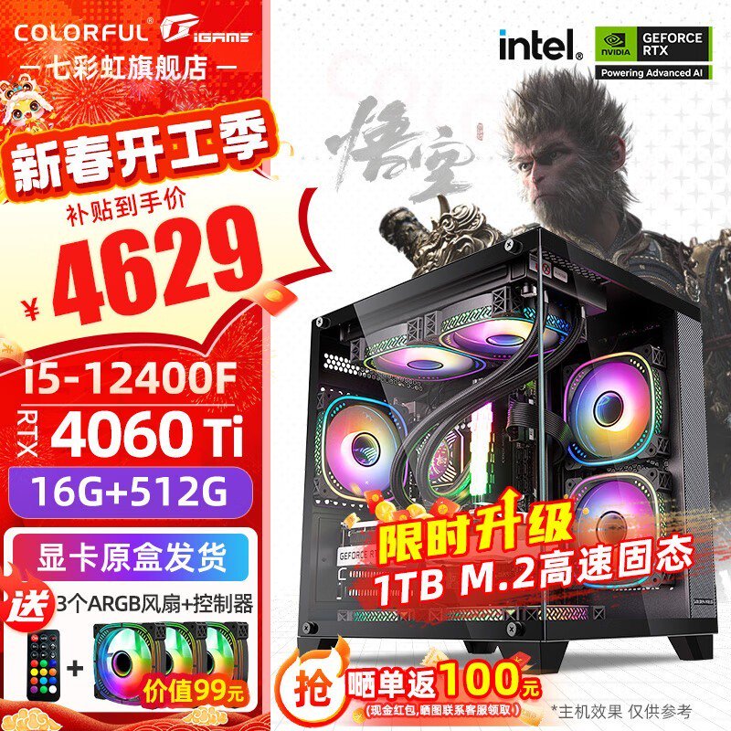 七彩虹海景房电脑主机4729元 12代i5处理器+显卡