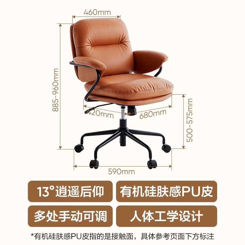 网易严选双层软软吐司居家真皮转椅电脑椅办公椅学习座椅凳子669元