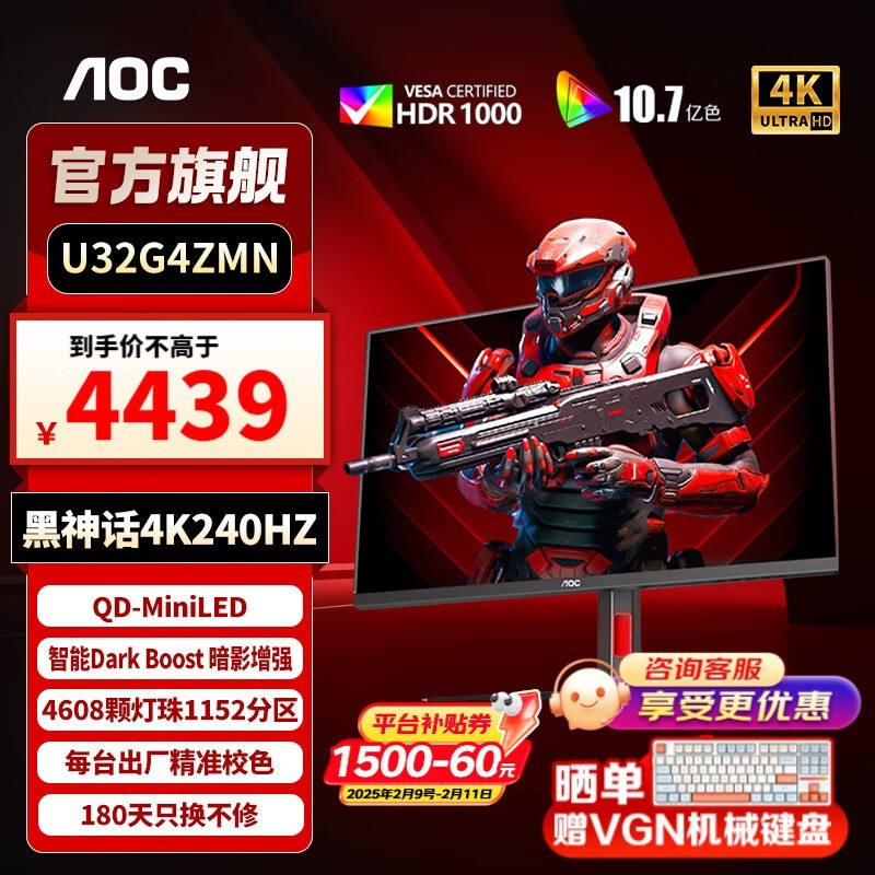 AOC U32G4ZMN显示器 限时抢购价4439元
