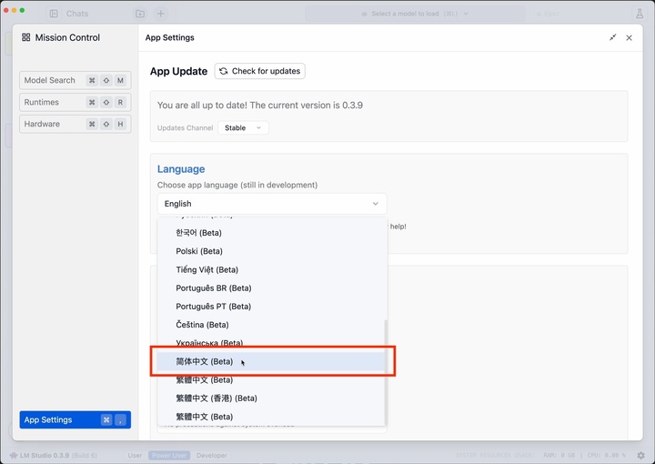 首先登场的是小白极简版本,在官网(lmstudio.ai)根据个人电脑型号下载 LM Studio,接着为了方便使用,建议点击右下角修改语言为简体中文。