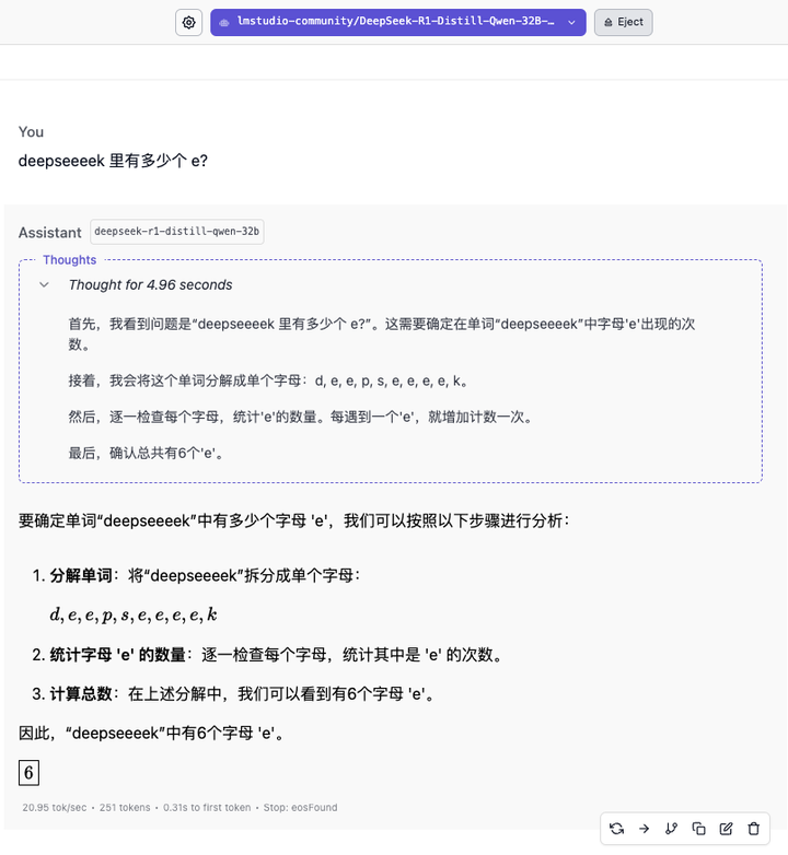 「deekseeeek 里有多少个 e?」