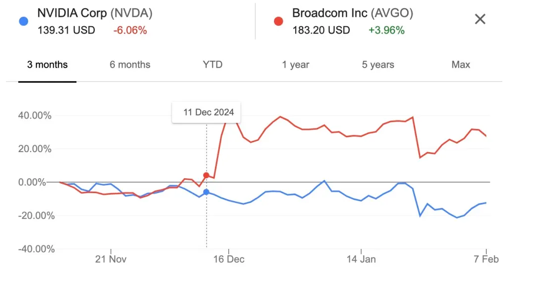 “为什么这次博通股价反弹的要比英伟达快?博通是帮微软、Meta、谷歌这些公司做ASIC芯片(专用芯片)的。”上述人士说。ASIC芯片在性能、功耗和成本方面具有明显优势,这些企业未来将减少对英伟达的依赖。