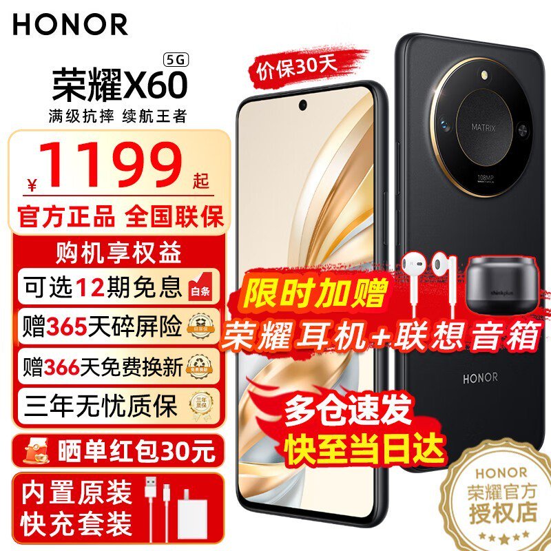 荣耀 X60手机优惠来袭!原价1209元,现在只需1129元!