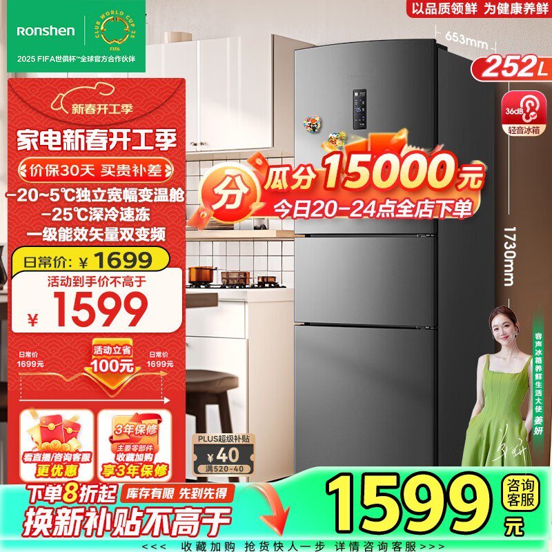 容声 BCD-252WD18NP 风冷三门冰箱,品质与节能的完美结合