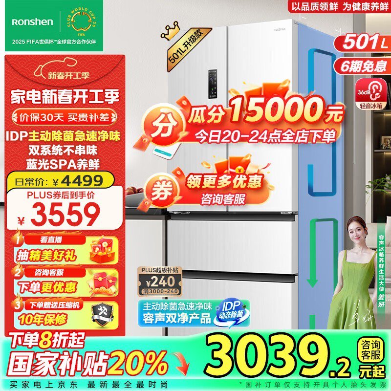 容声(Ronshen)IDP双净501pro法式多门冰箱,到手价2637元