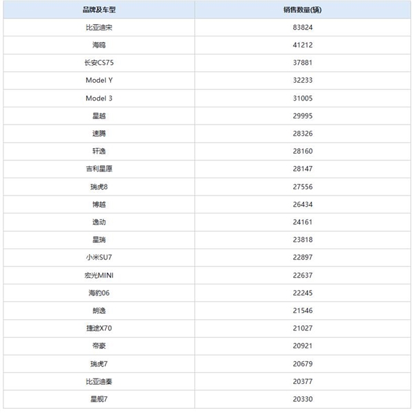 除了上述车型外,进入前10名的还有吉利星越、大众速腾、日产轩逸、吉利星愿以及奇瑞瑞虎8等车型。