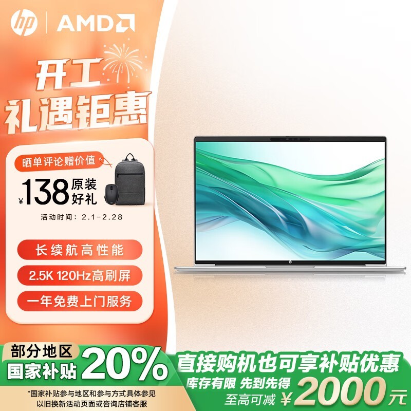 惠普战66七代锐龙版轻薄本国家补贴立减20% 现货抢购价3382元