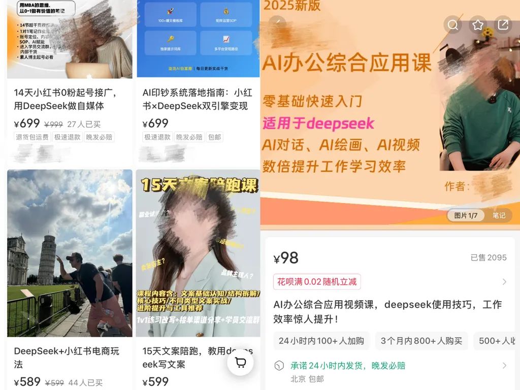 这一波借DeepSeek卖课挣钱的在自媒体平台上较多,且价格相对其他商品类型也较高。