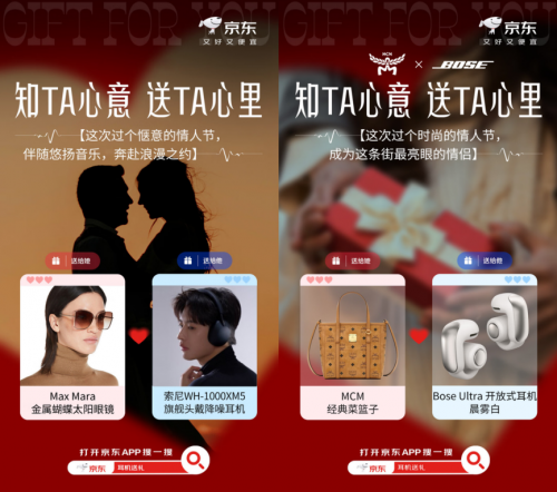 除了音箱和数码产品之外,如今耳机也是出街或上班不可缺少的时尚单品,想要在情人节送礼的消费者也可在京东搜“耳机送礼”。其中Max Mara金属蝴蝶太阳眼镜加索尼WH-1000XM5头戴式降噪耳机既能满足用户对时尚的需求,也能随时随地享受静谧的音乐时光。如果对方喜欢开放式耳机那可以入手MCM经典菜篮子手提包加Bose Ultra开放式耳机,整体风格更加简约时尚,同时也能凸显个人气质与风格。