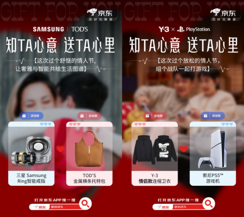 如果对方对新潮的数码产品感兴趣,那可以来京东搜“数码送礼”,用三星Ring智能戒指加TOD’S金属横条托特包带来的潮流感和智能生活给TA一个惊喜,还可以下单Y-3情侣款连帽卫衣加索尼PS5游戏机,换上情侣装后一同沉浸在游戏世界中,让亲密关系更进一步。