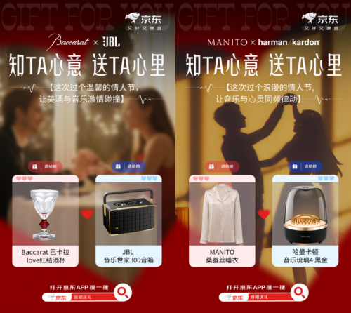 为了满足消费者挑选3C数码礼品时的多元化需求,京东3C数码带来了多组跨界时尚CP。打开京东搜“音箱送礼”,即可入手Baccarat巴卡拉love红结酒杯加JBL音乐世家300音箱,造型别致的红酒杯加上音质出色的新品音箱,能在情人节当天制造浪漫的氛围。或者入手MANITO桑蚕丝睡衣加哈曼卡顿音乐琉璃4黑金版,在浪漫的氛围中享受更好的睡眠质量。