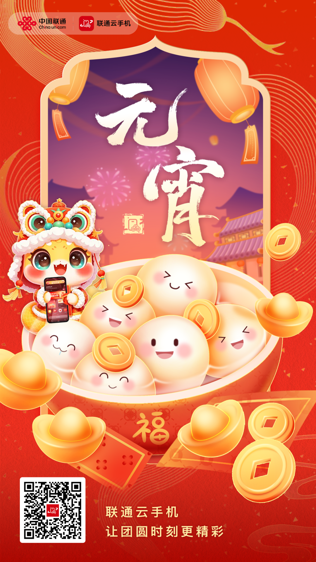 共赴冰雪之约,喜迎元宵佳节,联通云手机精心准备了三重惊喜好礼,用科技为节日增添更多乐趣,就从云端开启您的智能生活吧。