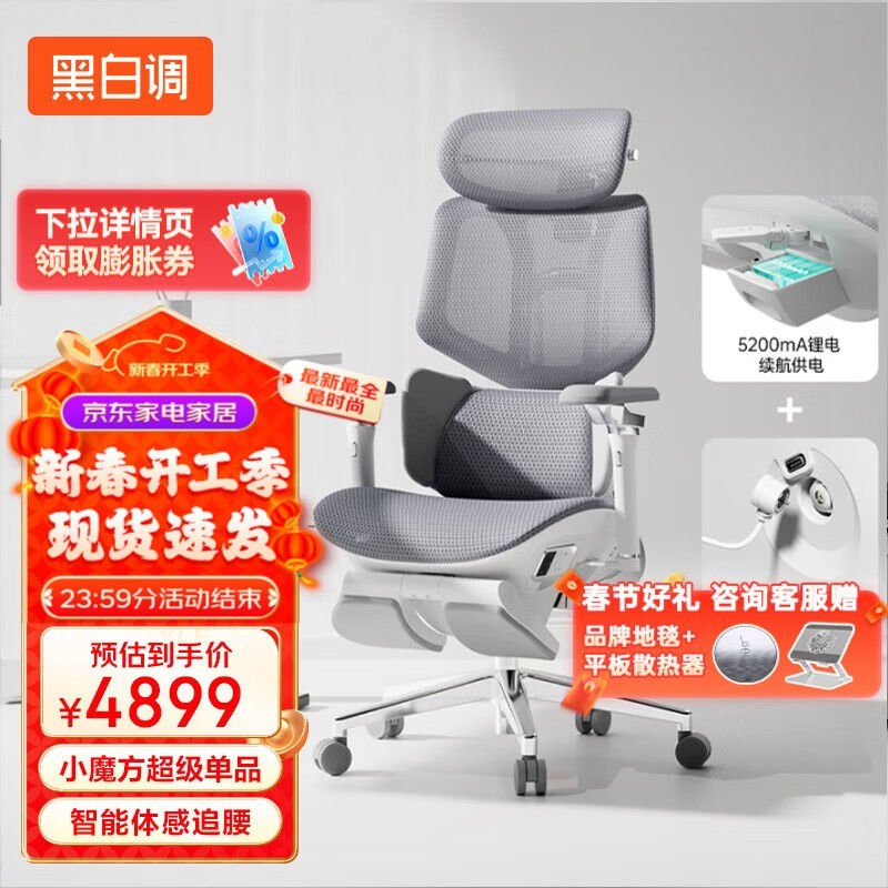 黑白调X7人体工学椅到手价3937元 还可享720°全姿态机械臂