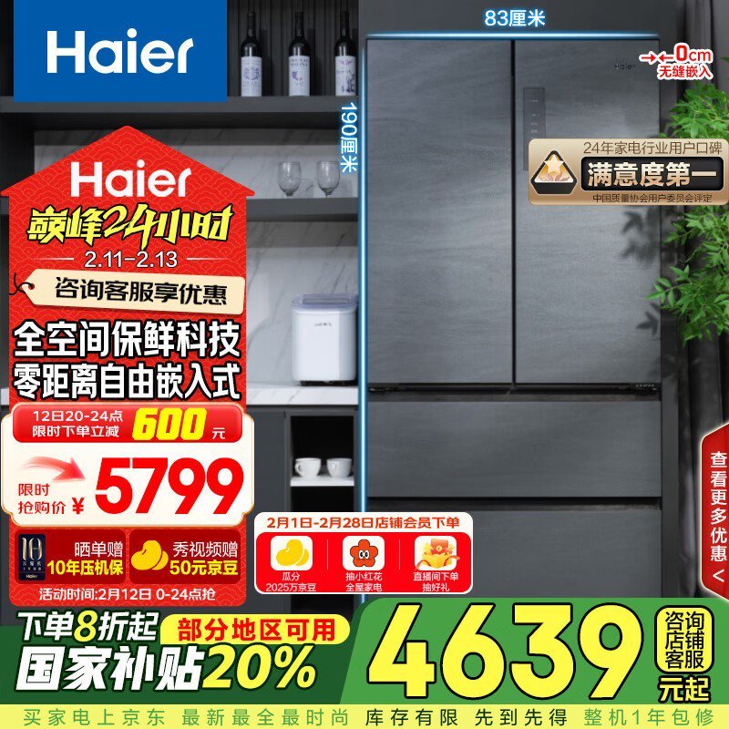 海尔 BCD-501WGHFD14S8U1 风冷多门冰箱到手价4108元