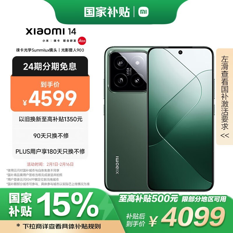 小米14 5G手机活动售价3736元,满4000减300元