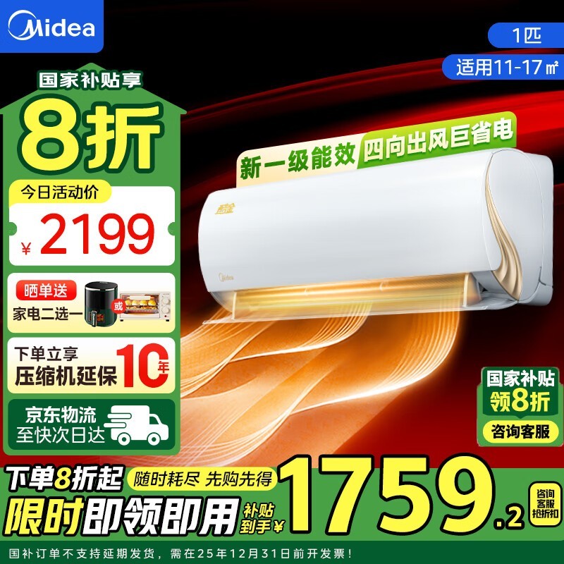 美的酷金空调挂机一级能效智能语音机只要1700 多元
