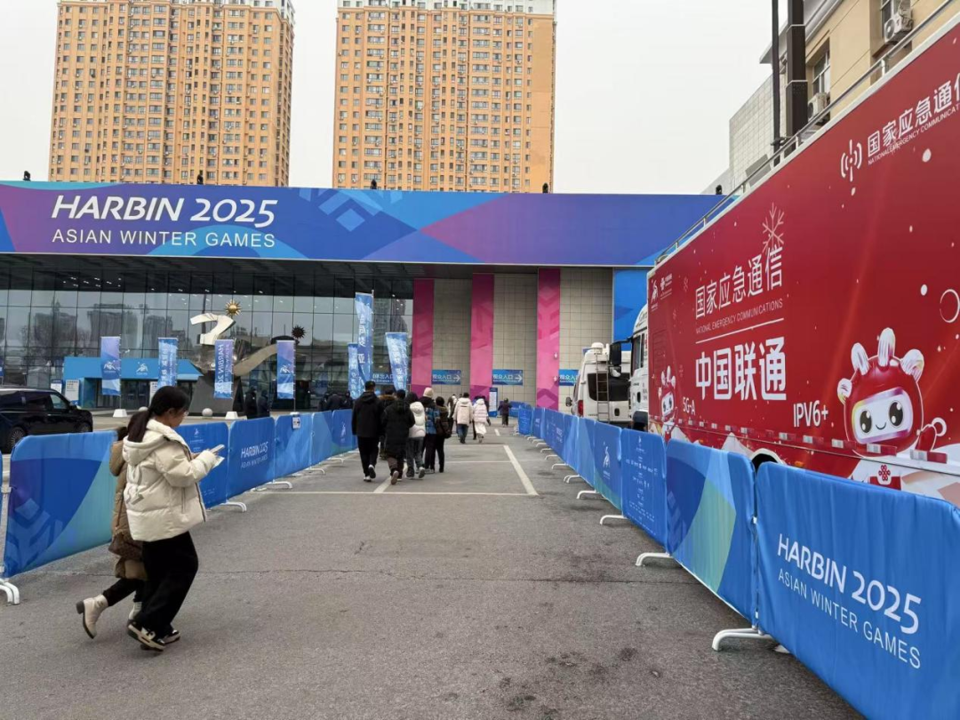 2月10日下午,记者探访哈尔滨冰球馆。在场馆入口前,中国联通的应急通信车格外显眼,走进场馆,看到墙角、屋顶有很多中国联通的PRU天线。