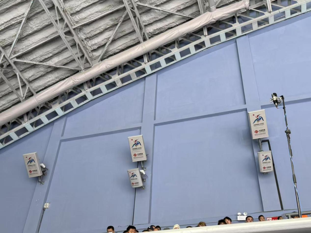 在能同时容纳5500名观众的冰球馆,在近乎满座的情况下,记者发送视频、下载文件感受到秒级传送体验,打视频电话也非常丝滑无卡顿。这跟被称为5.5G的5G-A在场馆的无死角覆盖密不可分。5G-A在2024年刚刚开始商用,中国联通就将这个最新的技术热点在亚冬会场馆与关键场景进行了部署,“我们在冰球馆内建设了22面300M PRU设备天线,这些设备天线采用最先进3CC(三载波聚合)内生智能5G-A技术,每个设备天线呈30°角,因此网络非常快速稳定。”隋勇告诉记者。