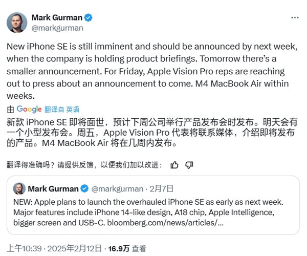 快科技2月12日消息,权威爆料者Mark Gurman此前曾爆料iPhone SE 4本周发布,但他今天发布最新消息称,新机推迟至下周发布。