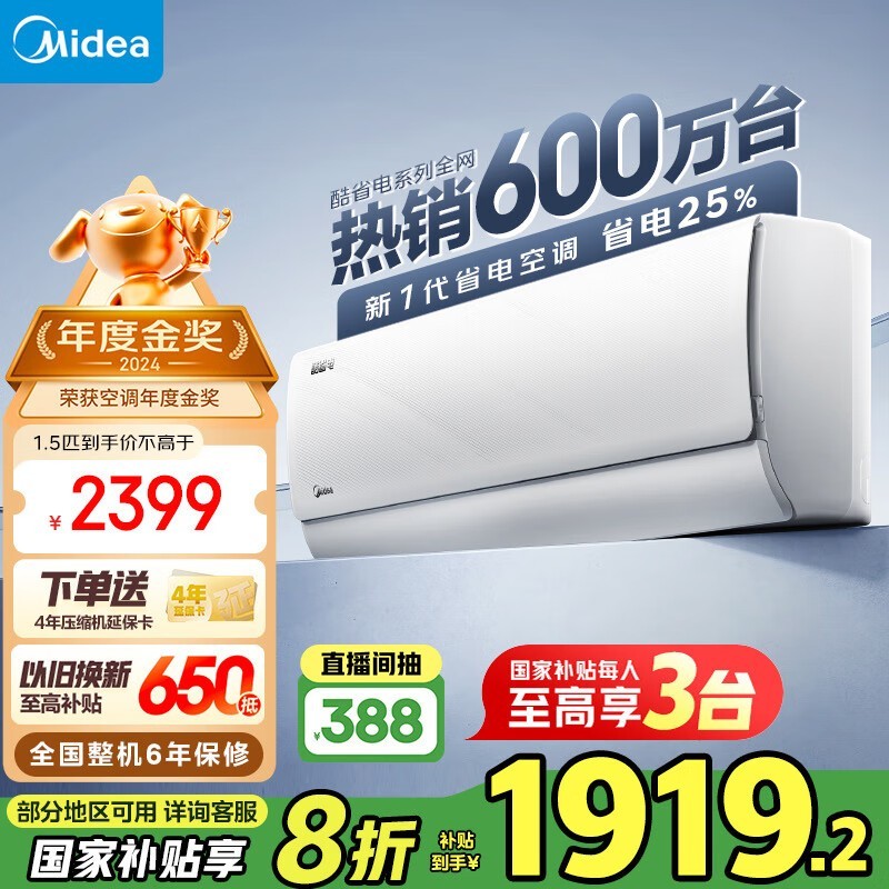 美的 i青春II系列空调1.5匹新一级能效节能智能高效省电优质