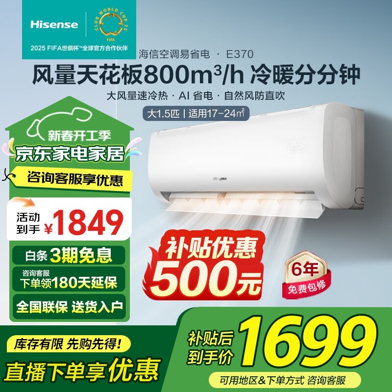 海信空调E370一级能效智能省电 还能远程操控