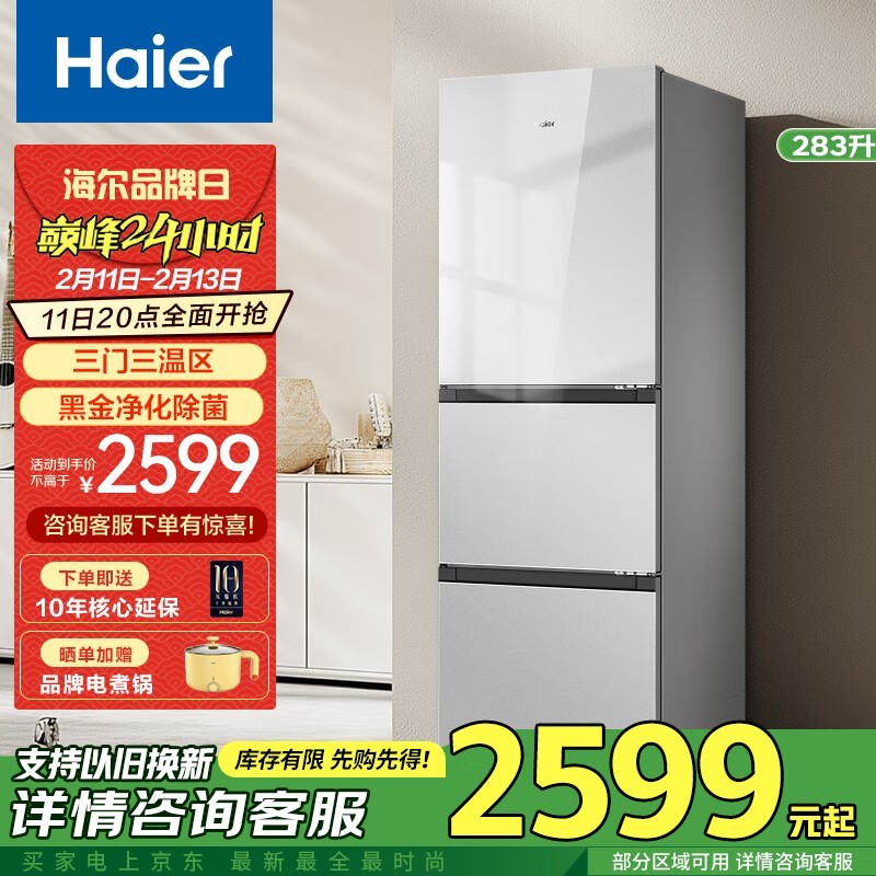 海尔Haier 283升节能电冰箱,到手价2399元