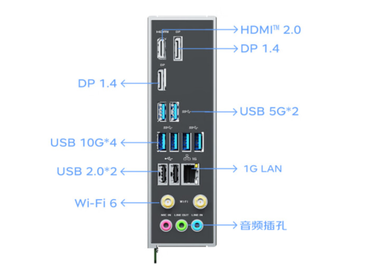 此外,该主板全面支持铭瑄最新PTM UI BIOS,在性能提升的同时为用户带来更轻松便捷的系统调试体验,全新铭瑄PTM UI BIOS借鉴手机APP的交互逻辑,采用PTM设计理念(PC To Mobile),将所有功能模块化后再进行聚焦式设计,让所有交互层级不超过2层,这更符合现今用户的使用习惯,让BIOS兼具高效、简单、易用。此外,该款主板还支持Wi-Fi 6和蓝牙5.2,带有千兆网口。接口方面提供了双DP 1.4接口和一个HDMI 2.0接口,板载4个USB扩展接口(其中2个5Gbps),后置8个USB接口(其中4个10Gbps和2个5Gbps)。