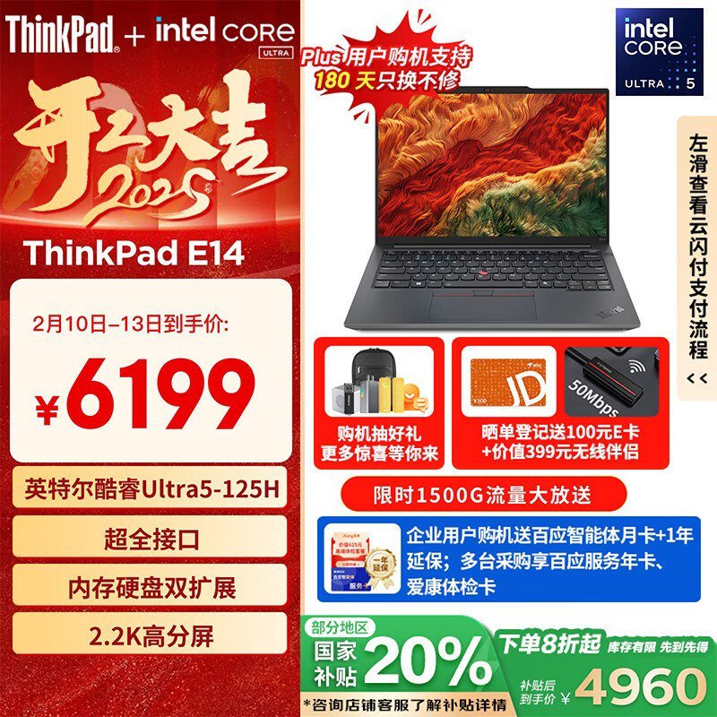 联想ThinkPad E14笔记本电脑 6149元到手 性能稳定散热佳
